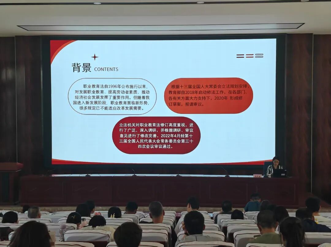 此次讲座内容丰富、内涵深刻,既有理论高度,又有实践深度,让与会教职工对《中华人民共和国职业教育法》有了更加全面、深入地理解。讲座结束后,教职工们纷纷表示,将以此次讲座为契机,认真学习领会职业教育法的精神实质,不断提升自身的法律意识和业务水平,积极投身于职业教育改革发展的实践中,为培养更多高素质技术技能人才贡献自己的力量。